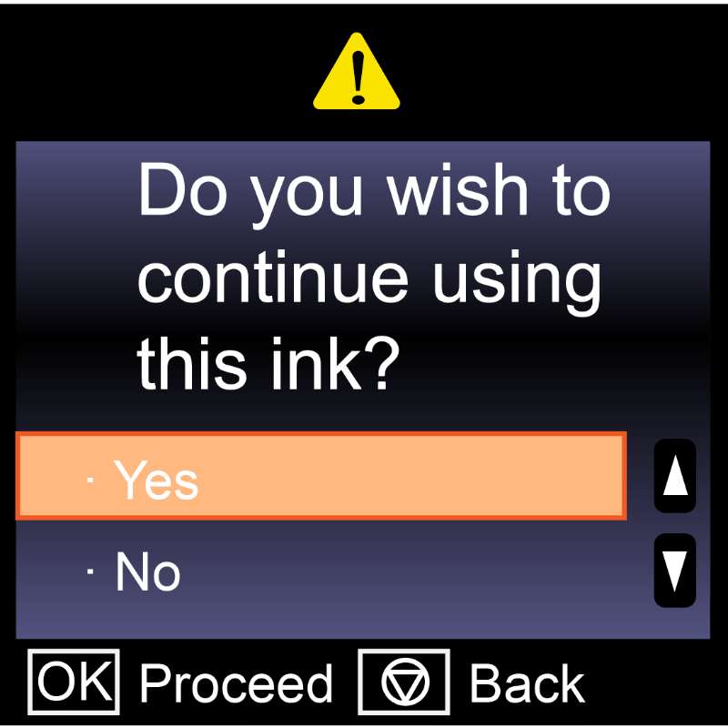 If prompted to continue using this ink, be sure to select "Yes" (Figure 2).