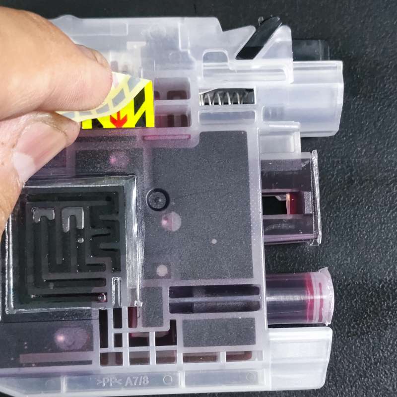 Firstly, remove the cartridge that caused the error from the cradle. Gently push out on the tab on the front of the cartridge. Reinstall the ink cartridge and you should hear it "click" into place. If the ink cartridge is still not being recognized, remove the ink cartridge from the cradle again. Confirm that there is a chip intact and in the correct location. If the chip is missing (Figure 2), you should return the cartridge to the place of purchase. If the chip is in place, you may need to clear it from any kind of obstruction or debris as this could be the cause of the error.