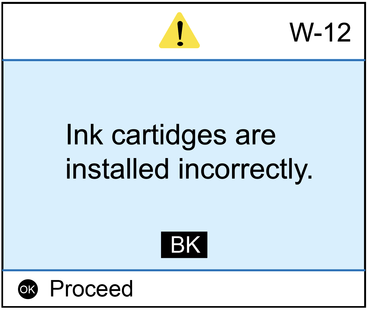 If you encounter an error message stating that "Ink cartridges are intalled incorrectly" (Figure 1), please try the following steps as possible solutions to resolve the problem.