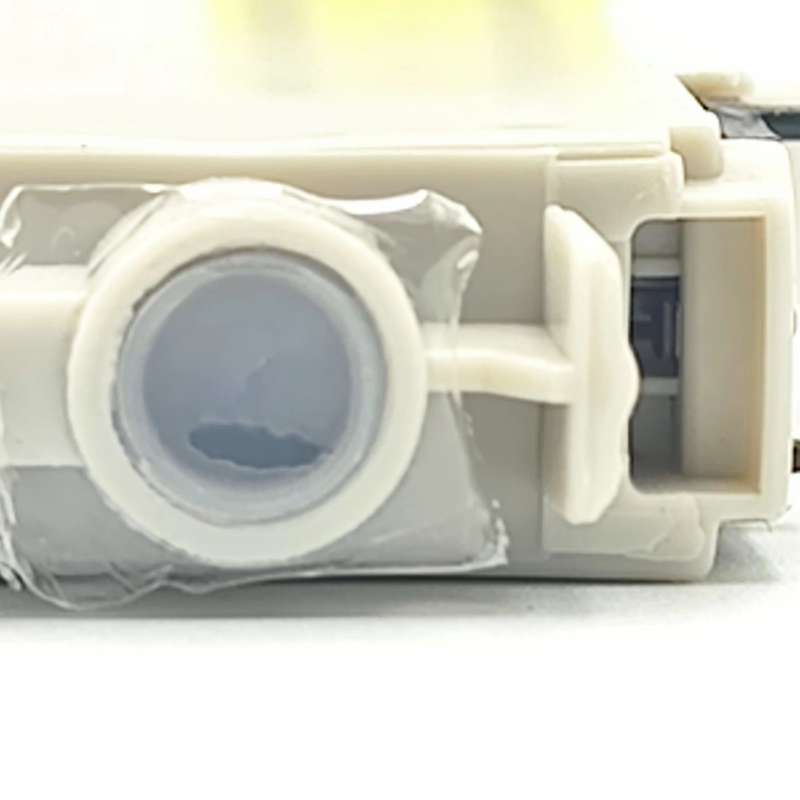 After the cartridge is removed from the printer, you need to make sure that the yellow pull tab covering the cartridge is removed. You also need to make sure that the seal of the printing fluid supply opening on the bottom of the cartridge has been punctured by the printer. (Figure 1)