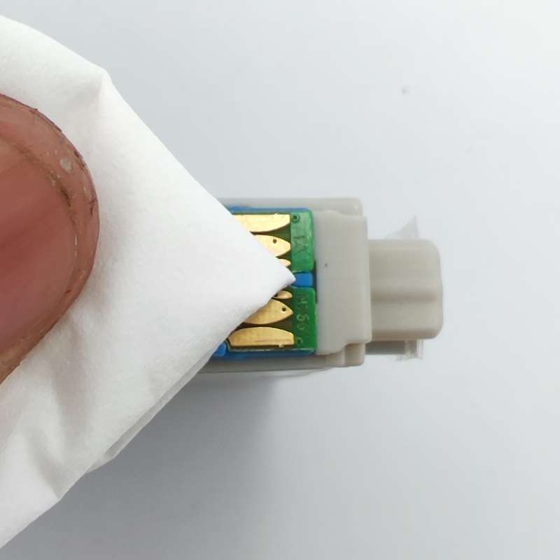 (Figure 3) If you have just installed the ink cartridge and the ink levels display as low or empty, please remove the ink cartridge, take a lint free cloth to gently wipe the dust on the chip, and then replace the cartridge in the cradle. If the ink level is still low, it may be a problem with the chip. Plaese contact your dealer to replace the ink cartridge.
